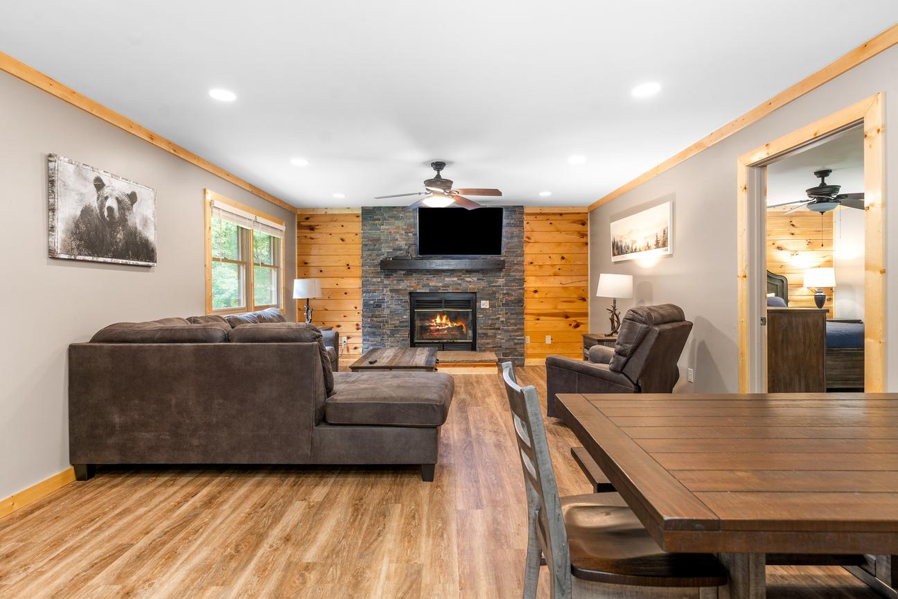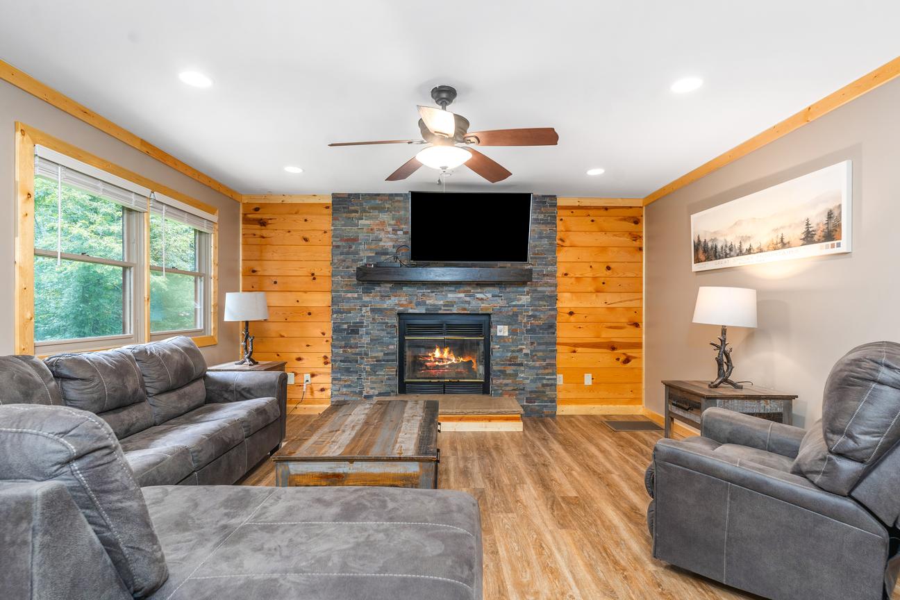 This cabin is ideal for families and will accommodate up to six. You will enjoy the cozy fireplace on those cool nights and a hot tub to soothe your weary body! The cabin sits up on a hill overlooking the Mountain Falls resort. You can swim in the pool or take hikes back into the woods. With a full kitchen, you can prepare an entire meal, or have late night snacks. Or, you can prepare steaks, hamburgers or hot dogs on your charcoal grill located just outside your door. And, you are close to all the action in Pigeon Forge, Gatlinburg, Sevierville and the Great Smoky Mountain National Park! Come and experience a true family vacation, you'll be glad you did!
